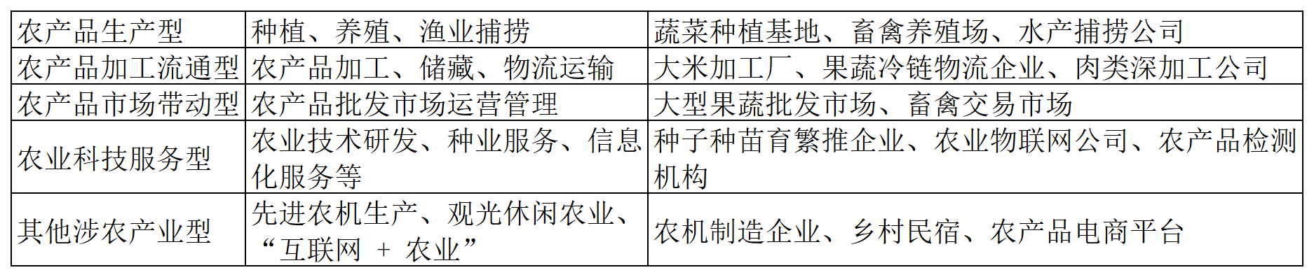农产品生产型 1000 万元 / 4 分 200 万元 / 3 分 1500 万元 / 23 分
