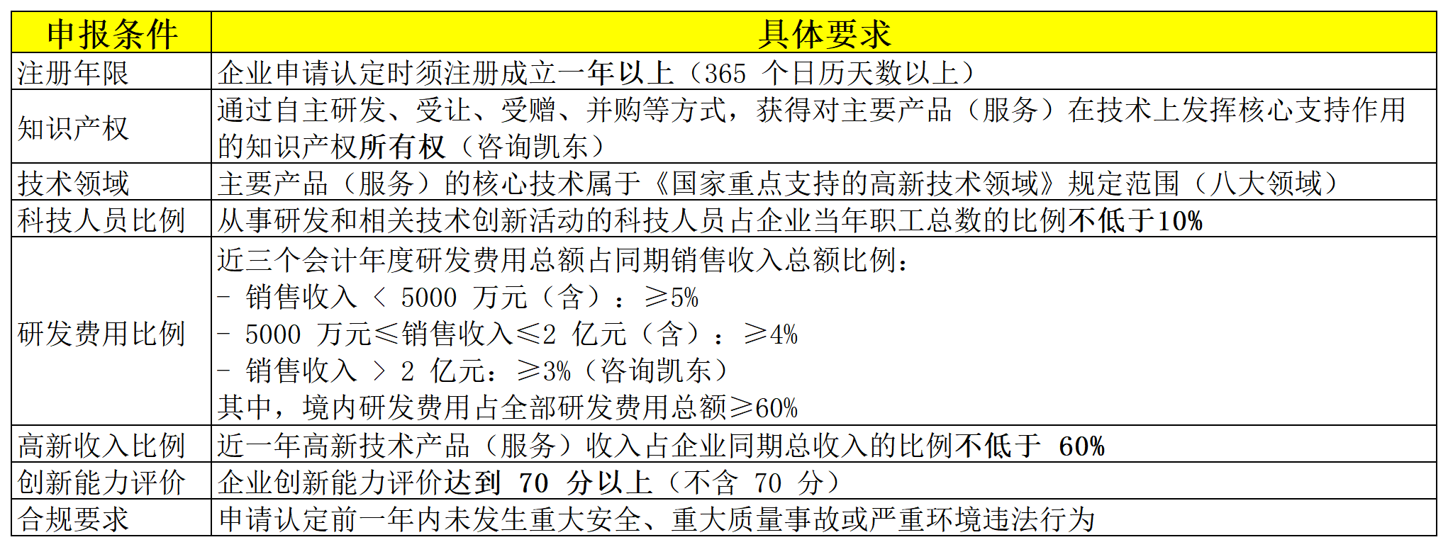 高新技术企业八大申报条件