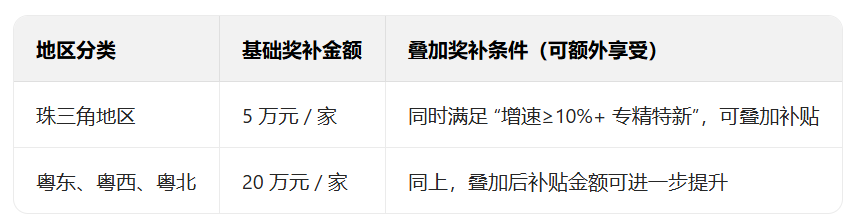 一、小微工业企业 “小升规” 奖补:最高 20 万元 / 家,粤东西北补贴力度更大