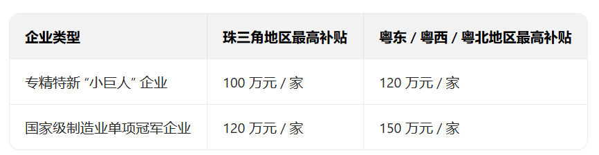二、专精特新 “小巨人”+ 制造业单项冠军:最高 150 万元 / 家,支持创新升级