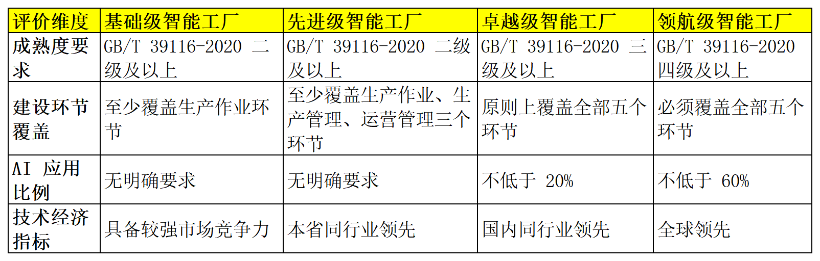 - 企业需完成全环节建设,形成明确的智能化应用成果。