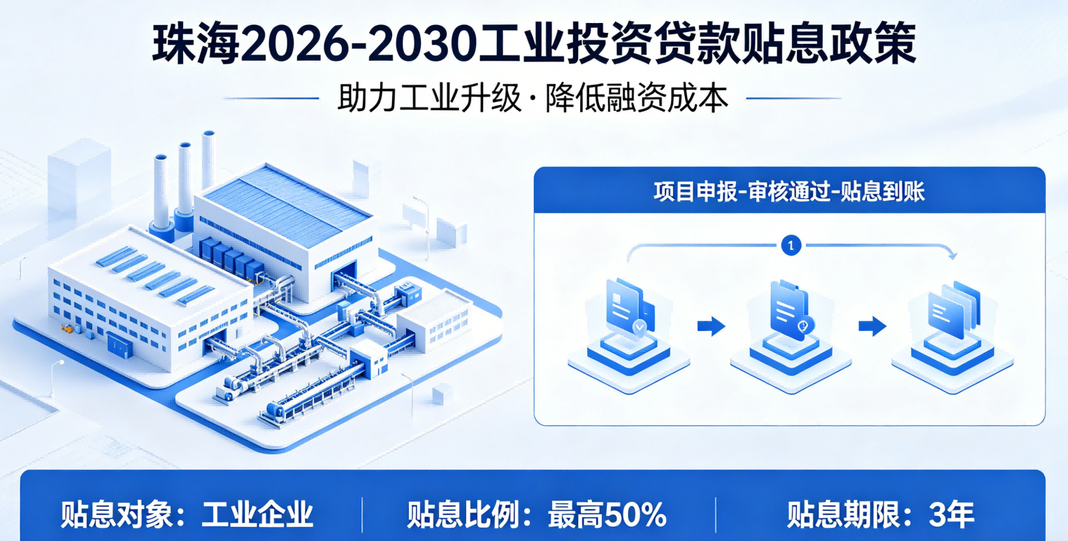珠海工业贴息、工业投资贷款、珠海技改补贴、2026-2030珠海工业投资贷款贴息政策、珠海工业企业固定资产投资贴息、珠海技改贷款补贴申请条件、珠海惠企政策贷款贴息流程、珠海工业投资贷款贴息政策 2026、珠海技改补贴最高500万、珠海LPR贴息政策、珠海工业企业贷款补贴、珠海财政惠企利民平台申报