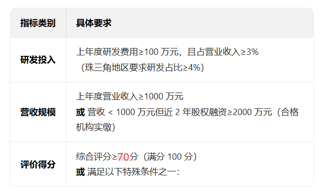 - 创新基础:必须先获得创新型中小企业认定(复核企业除外)