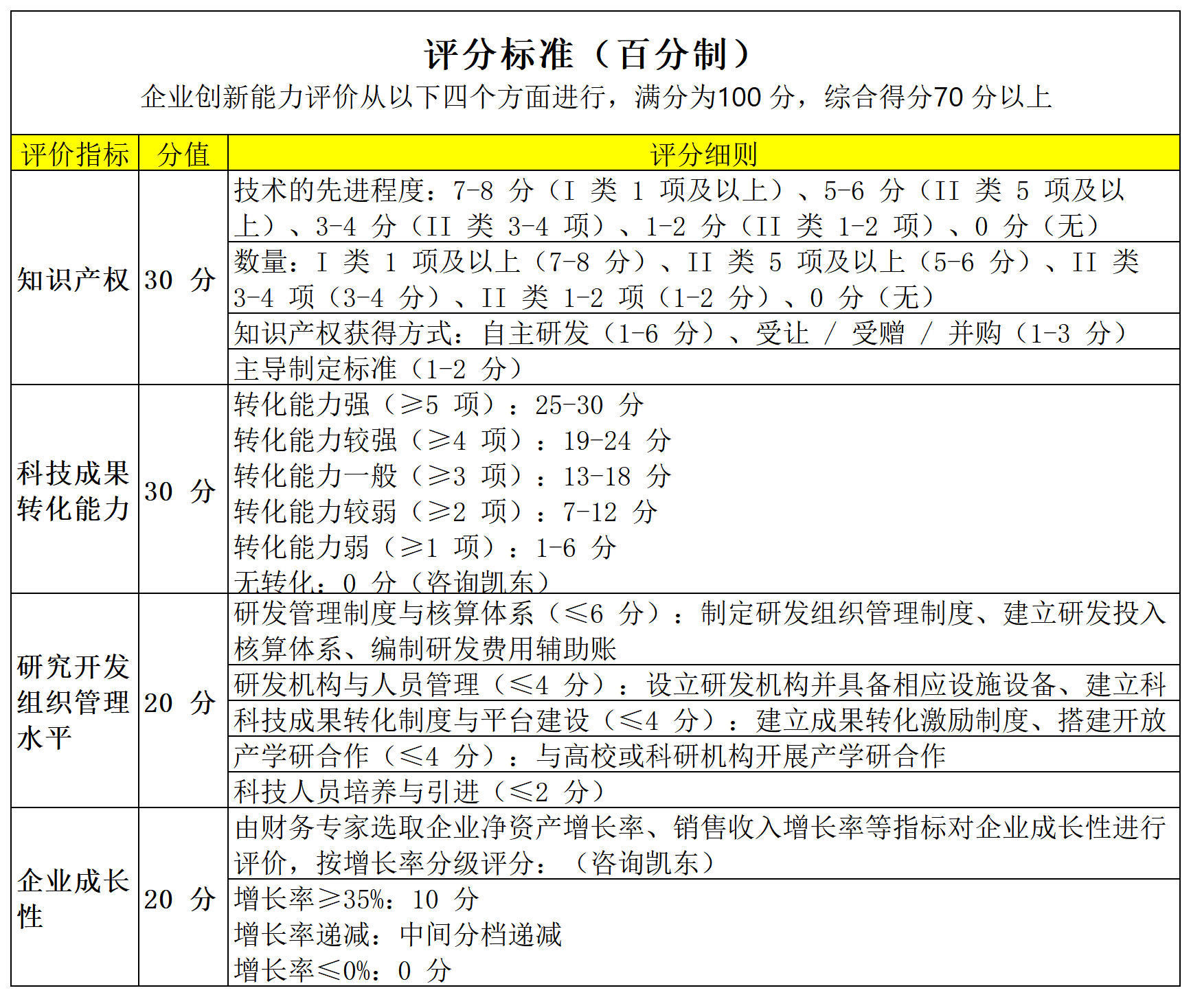 高新技术企业认定评分标准