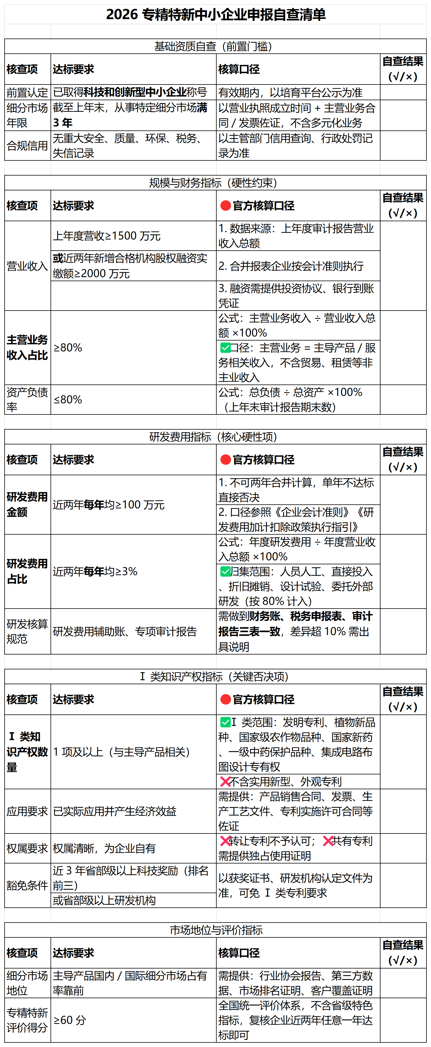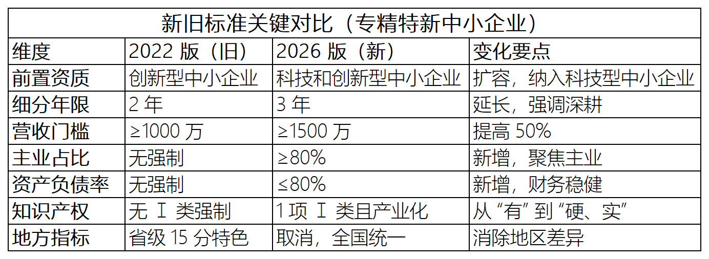 文末附(2026 专精特新中小企业申报自查清单)