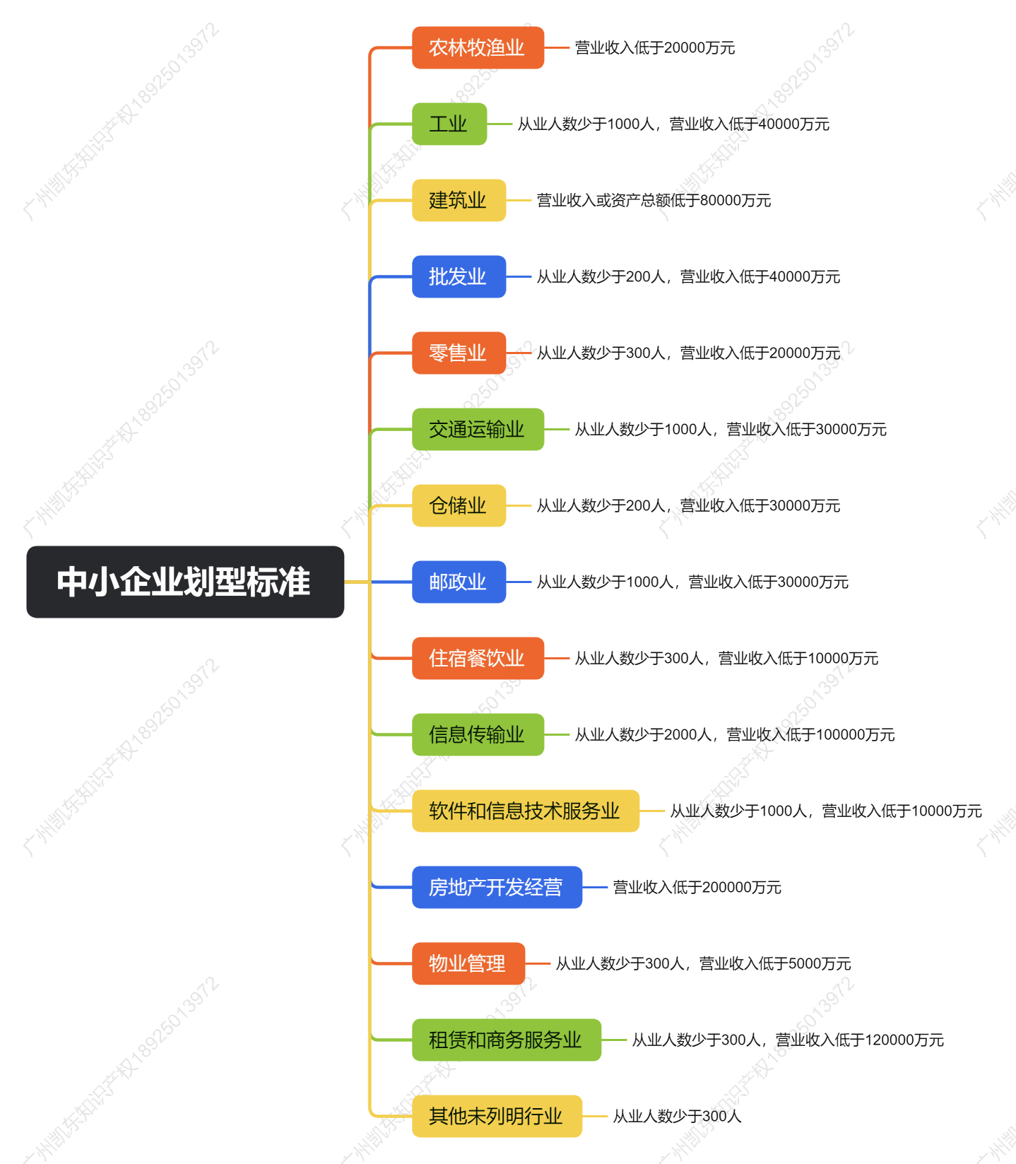 规模划分以企业营业执照登记行业为准,各行业从业人数、营业收入 / 资产总额需符合以下标准,核心行业关键指标如下(完整标准按官方划型规定执行):欢迎咨询凯东知识产权:189 2501 3972 (微信)