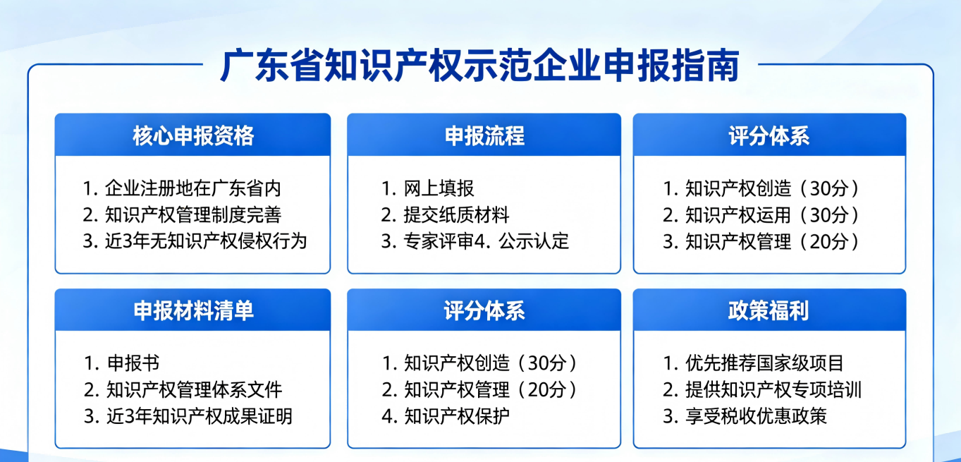 2026广东省知识产权示范企业申报指南、广东省知识产权示范企业认定办法、知识产权示范企业补贴政策、高价值专利布局、贯标认证、广东知识产权示范企业、广东省知识产权示范企业申报、广东省知识产权示范企业条件、广东知识产权示范企业材料、知识产权示范企业评分、省知识产权示范企业补贴、GB/T29490贯标、专利产品收入占比、高价值专利