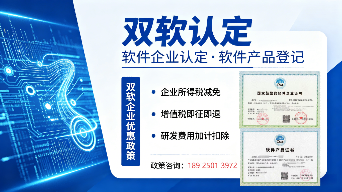 双软认定是软件企业最具性价比的资质之一,既能大幅降低增值税、企业所得税税负,又能提升招投标竞争力、彰显研发实力。